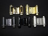 Hinges are sold individually. Typically 4 are needed to install standard cafe doors consisting of a pair of doors. The following finishes are available: polished and satin brass, satin nickel, oil rubbed bronze and black gloss. This ad is for satin nickel, see our other items for sale to purchase any of the other finishes. SPECS: maximum door weight is 20 pounds if using 2 hinges per door or 30 pounds of using 3 hinges per door. Max door width is 24". Door thickness allowance is 3/4" to 1-1/8". Feel free to contact us by clicking on the blue "DDC Industry" link found above - our contact info is under the orange "Seller Help" heading. We also sell this same hinges in a 5" size for larger and heavier doors - contact us or see our other itmes for sale for details.