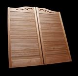 Description - Cafe Doors (Prefit for 30" Finished Opening) with Wood Scroll Accents: Saloon Western Swinging Style Wood Bar Door Made of Exotic Hardwood - Polished Brass Cafe Doors Hinge Set Is Included